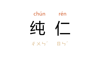 引《文选·王襃·四子讲德论》:「今圣主冠道德,履纯仁,被六艺,佩礼文。」《红楼梦·第一六回》:「于是太上皇皇太后大喜,深赞当今至孝纯仁,体天格物。」