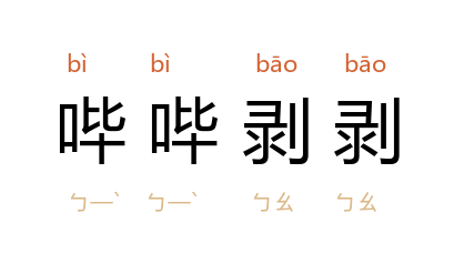 ⒈ 状声词。形容敲击或爆裂的声音。也作「必必剥剥」。