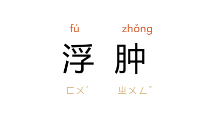引《儒林外史·第四六回》:「成老爹道:『我说我这脸是浮肿著的。』众人一齐笑了。」