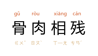引《晋书·刘元海载记》:“今 司马氏 骨肉相残,四海鼎沸,兴邦復业,此其时矣。”南朝 宋 刘义庆 《世说新语·政事》:“盗杀财主,何如骨肉相残。”《东周列国志》第五回:“家门不幸,骨肉相残,诚有愧於邻国。”