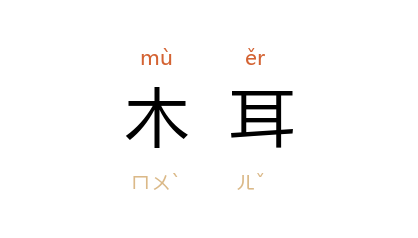 ⒈ 植物名。真正担子菌类木耳族。生于朽腐的树干上。担子果成片状,一边黏在腐木上,表面向上突出。菌丝体生长后,生子实体,形如人耳,径约一公寸,内面平滑,呈暗褐色,外面密生柔软的短毛,呈淡褐色。可供食用。
