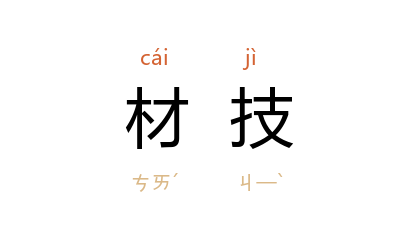技,一本作“伎”。 唐 韩愈 《鳄鱼文》:“刺史则选材技吏民,操强弓毒矢,以与鱷鱼从事,必尽杀乃止。”