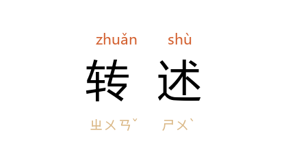 引巴金 《家》三二:“琴 转述的 梅 的话又涌上了他的心头。”吴组缃 《山洪》二四:“寿官 说若有听不懂的,可以代为转述。”