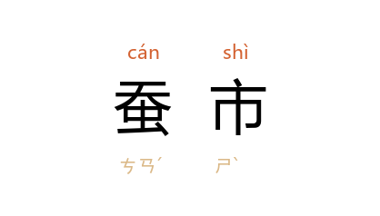 ⒈ 亦作“蚕市”。 蜀 地旧俗,每年春时,州城及属县循环一十五处有蚕市,买卖蚕具兼及花木、果品、药材杂物,并供人游乐。参阅 宋 高承 《事物纪原·岁时风俗·蚕市》、 宋 黄休复 《茅亭客话·鬻龙骨》。