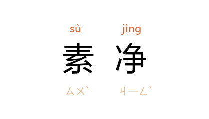 引《初刻拍案惊奇·卷一六》:「到得店中下轿,见了家人沈文穿一身素净衣服。」《红楼梦·第四〇回》:「年轻的姑娘们,房里这样素净,也忌讳。」