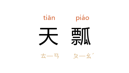 引宋 苏轼 《二十六日五更起行至磻溪天未明》诗:“安得梦随霹靂驾,马上倾倒天瓢翻?”明 李东阳 《爱民》诗:“愿向天瓢分一滴,徧将恩雨洒蓬蒿。”沉砺 《晚眺》诗:“不旋地轴移三岛,便借天瓢洗九州。”