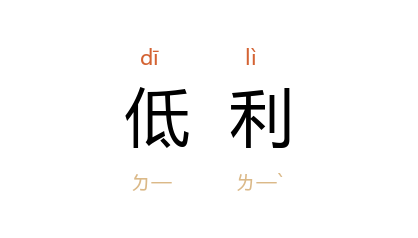 如:「低利贷款」、「在低利环境下,许多人喜欢投资买房。」