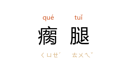 ⒈ 腿由于创伤、缺陷或极度劳累而致残了。