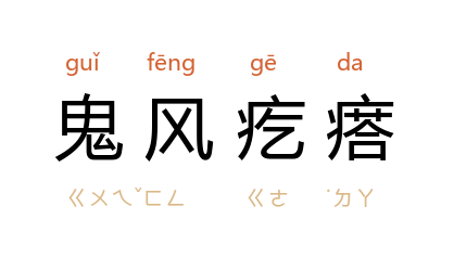 引老舍 《赵子曰》第三:“﹝ 赵子曰 ﹞手指头在桌底下一屈一伸,然后把手放在桌上,左手抓着右手的指缝,好似要出‘鬼风疙瘩’。”