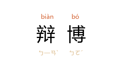 引汉 刘向 《说苑·政理》:“文侯 曰:‘子往矣!是无邑不有贤豪辩博者也,无邑不有好扬人之恶、蔽人之善者也。’”《后汉书·文苑传下·边让》:“﹝ 边让 ﹞少辩博,能属文。”《旧唐书·方伎传·僧玄奘》:“玄奘 既辩博出羣,所在必为讲释论难,蕃人远近咸尊伏之。”清 曾国藩 《万寅轩先生家传》:“海内文人以靡丽辩博相高。”
