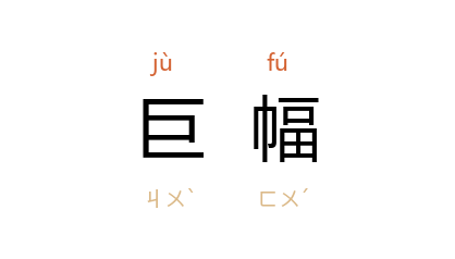 引元 张翥 《题九龙戏珠图》诗:“我尝见画多巨幅,簸荡惊涛骇人目。”鲁迅 《中国小说史略》第二三篇:“但如集诸碎锦,合为帖子,虽非巨幅,而时见珍异。”