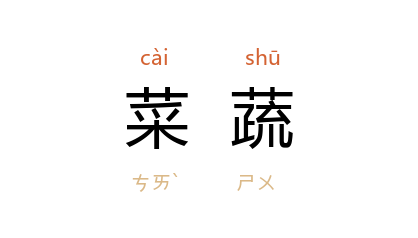 ⒈ 蔬菜。 《晋书·王湛传》:“兄子 济 轻之,所食方丈盈前,不以及 湛。