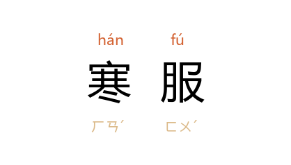 引《后汉书·耿恭传》:“先是 恭 遣军吏 范羌 至 敦煌 迎兵士寒服。”南朝 宋 谢瞻 《九日从宋公戏马台集送孔令诗》:“风至授寒服,霜降休百工。”唐 李肇 《唐国史补》卷中:“德宗 幸金鑾院,问学士 郑餘庆 曰:‘近日有衣作否?’ 餘庆 对曰:‘无之。’乃赐百縑,令作寒服。”