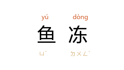 ⒈ 食品。鱼烹煮后的汤汁凝结成的半固体。