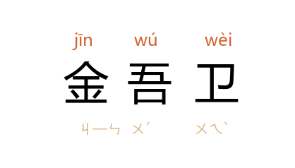 引唐 王建 《鸡鸣曲》:“金吾卫里直郎妻,到明不睡听晨鸡。”元 马致远 《汉宫秋》第一折:“小黄门,传旨説与金吾卫,便拏 毛延寿 斩首报来。”《二刻拍案惊奇》卷五:“圣旨许令万目仰观,金吾卫不得拦阻。”