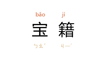 引南朝 梁 沉约 《为齐竟陵王发讲疏》:“灵篇宝籍,远探龙藏,盖无得而言焉。”唐 王勃 《益州绵竹县武都山净慧寺碑》:“黄龙负匣,著宝籍於山经;紫凤衔书,荫荣光於井络。”清 赵翼 《哭汪文端师》诗:“霛函分 宛委,宝笈聚 嫏嬛。”闻一多 《春之末章》诗:“我读完这春之宝笈底末章,就交给你们永远管领着罢!”
