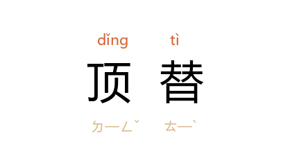 引《六部成语注解·兵部》:「顶替:此系考试时,如查出有冒名顶替,立即究办。」