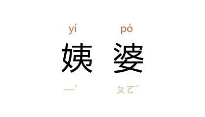 ⒈ 称谓:(1) 称外祖母、祖母的姊妹。(2) 传统妇女对丈夫姨母的称呼。