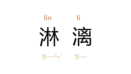 ⒈ 见“淋漓”。亦作“淋离”。亦作“淋灕”。