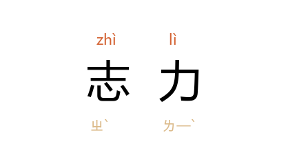 引晋 葛洪 《抱朴子·勤求》:“察其聪明之所逮,及志力之所能辨,各有所授。”《北齐书·王怀传》:“怀 以武艺勋诚为 高祖 所知,志力未申,论者惜其不遂。”宋 叶适 《定山瓜步石跋三堡坞状》:“江 南岸兵胆气自生,志力得展。”清 陆以湉 《冷庐杂识·却老要诀》:“孟詵 年虽晚暮,志力如壮。”