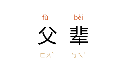 引元·乔吉《扬州梦·第一折》:「有太守牛僧孺,原是父辈,今日设席相请,须索走一遭去。」《精忠岳传·第七八回》:「虽如此,他乃父辈,非比他人。」