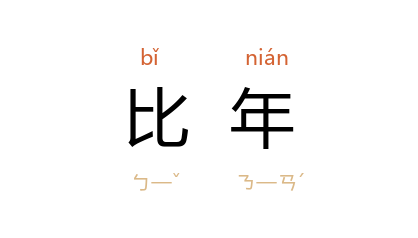 英语(literary) every year, year after year, in recent years, Taiwan pr. [bi4 nian2]