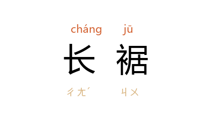 引三国 魏 曹植 《七启》:“长裾随风,悲歌入云。”一本作“长袖”。 唐 牛僧孺 《玄怪录·张佐》:“高冠长裾缘緑衣人,宣青纸制。”宋 曾巩 《寄孙子翰》诗:“不容乃独见磊落,出走并海飘长裾。”