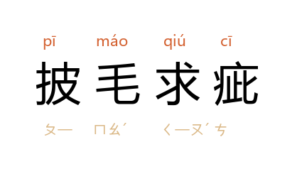 亦作“披毛求瑕”。 《北史·崔浩传》:“是以妄张贼势,披毛求瑕,冀得肆心。”