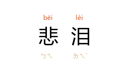 引晋 陶潜 《悲从弟仲德》诗:“衔哀过旧宅,悲泪应心零。”宋 陈亮 《与吕伯恭正字书》之二:“每念及此,或推案大呼,或悲泪填臆,或髮上衝冠,或拊掌大笑。”