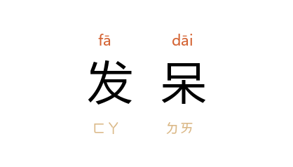 ⒈ 心里想著事情而出神的样子。也作「发呆」。