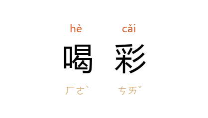 ⒉ 赌博游戏时,希望得彩而大声呼喝。也作「喝采」。