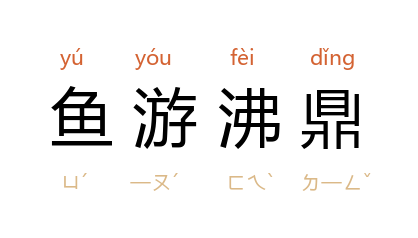 引唐 李商隐 《行次昭应县道上》诗:“鱼游沸鼎知无日,鸟覆危巢岂待风!”亦作“鱼游沸鼎”。 清 张鹏翀 《和岐亭戒杀诗》之二:“鱼游沸鼎中,烹燖化为汁。”