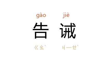 ⒈ 也作“告戒”
