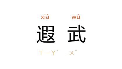 引《文选·张衡<东京赋>》:“軼五帝之长驱,踵二皇之遐武。”薛综 注:“遐,远也。武,迹也。”晋 葛洪 《抱朴子·安贫》:“迪 崔烈 之遐武,縻好爵於清时。”北魏 宗钦 《赠高允》诗:“昂昂高生,纂我遐武。勿谓古今,违规易矩。”宋 强至 《代王给事回陈待制启》:“绳絫朝之遐武,敞二阁以右文。”