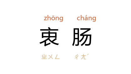 ⒈ 内心的情意。唐·韩偓〈天鉴〉诗:「神依正道终潜卫,天鉴衷肠竞不违。」也作「衷曲」。