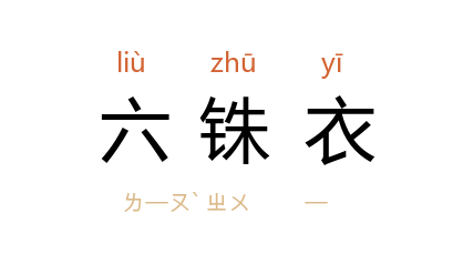 ⒈ 佛经称忉利天衣重六铢,谓其轻而薄。见《长阿含经·世纪经·忉利天品》。后称佛、仙之衣为“六铢衣”。