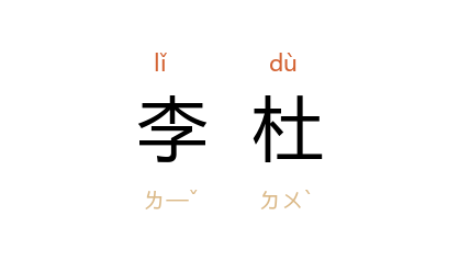 ⒈ 东汉·李固、杜乔的并称。东汉·李膺、杜密的并称。初唐诗人杜审言与李峤,晚唐诗人李商隐与杜牧亦并称“李杜”。东汉·李云、杜众的并称。东晋·杜预与北魏·李冲的并称。唐·李白与杜甫的并称。宋·李韶与杜范的并称。