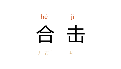 引《南齐书·高帝纪上》:“相持移日,乃出轻兵攻贼西,使马军合击其后,贼众大败。”郑观应 《盛世危言·水师》:“敌至或分抄,或合击,得机则进,失机则退。”《新华文摘》1984年第10期:“迅速集中兵力,从四面八方分进合击敌人。”