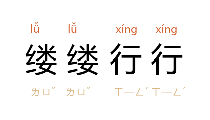 引《中国民间故事选·义和团的故事》:“从 龙河 北过来许多逃难的老老小小,缕缕行行地打 皇龙桥 上过河。”梁斌 《红旗谱》一:“一群群,一伙伙,缕缕行行走了来。”浩然 《艳阳天》第一〇三章:“男男女女,老老少少,带着绳子、扁担、筐子,互相呼喊着,缕缕行行地涌向村口,又涌到地里。”