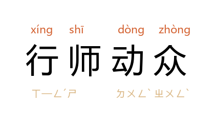 ⒈ 泛指动员众多人力,去做某事。《三国志·卷三·魏书·明帝纪》裴松之注引《魏书》曰:「行师动众,论决大事。」也作「兴师动众」。