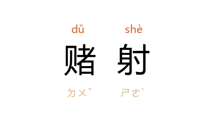 引《魏书·杨播传》:“上巳设宴, 高祖 与中军、 彭城王勰 赌射。”《敦煌变文集·韩擒虎话本》:“蕃家弓箭为上,赌射只在殿前。”明 高启 《王架阁家画马》诗:“解鞍闲立斜阳里,应是城南赌射归。”