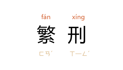 引《荀子·议兵》:“故坚甲利兵不足以为胜,高城深池不足以为固,严令繁刑不足以为威。”清 昭槤 《啸亭杂录·海参领》:“今若散给兵丁,虽稍济其生计,倘一旦用之,则恐侵冒者众,徒以繁刑害众,无以济实政也。”