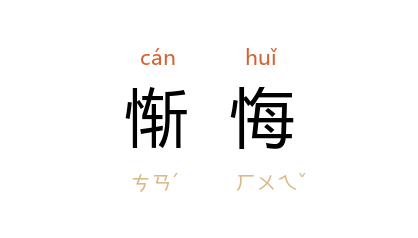 引《后汉书·鲁恭传》:“亭长乃慙悔,还牛,诣狱受罪。”宋 苏轼 《次韵子由述怀》之二:“陛楯诸郎空雨立,故应惭悔不儒冠。”清 褚人穫 《坚瓠广集·悔失两元》:“伯敬 始悔至 江 南,轻慢两元,惭悔不安。”章炳麟 《送印度钵逻罕保什二君序》:“使帝国主义者之羣盗,厚自慙悔。”
