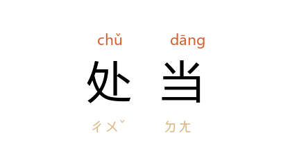 引汉 应劭 《风俗通·十反·赵相汝南李统》:“时 冀州 有疑狱, 章帝 见问 统,统 处当详平,克厌上心。”《晋书·顾荣传》:“会 赵王 伦 诛 淮南王 允,收 允 僚属付廷尉,皆欲诛之, 荣 平心处当,多所全宥。”