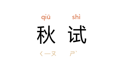 ⒈ 指科举时代地方( 唐 宋 为州府, 明 清 为省)为选拔举人所进行的考试。因于秋季举行,故称。