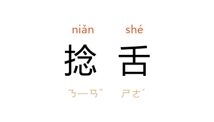 引元 无名氏 《翫江亭》第三折:“我这般躬身叉手,曲脊低头。背着你,街上人都捻舌,排説我哩!”