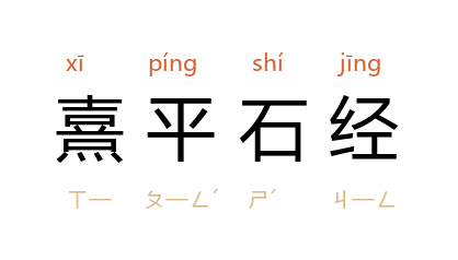 ⒈ 东汉灵帝熹平年间,据蔡邕等奏,准正定六经文字所刻的碑石经文。有《鲁诗》、《尚书》、《周易》、《仪礼》、《春秋》、《公羊传》、《论语》等七种石经。后亡失殆尽,近世续有残石出土。以汉隶写成,用笔冲和,结体方整,应规入矩,波磔不夸张,为当时国定标准字体。