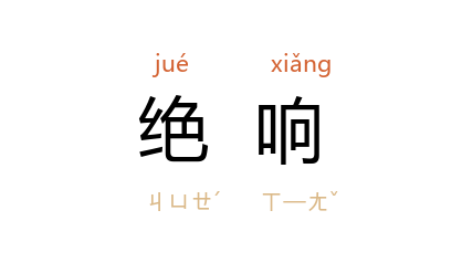 后因称中断散失之学术技艺为“絶响”。 元 刘壎 《隐居通议·诗歌三》:“﹝ 諶公 佑 ﹞古体乐府俱善,而於律体尤精。 唐 律絶响三百年,公自出机轴,扫空凡马。”