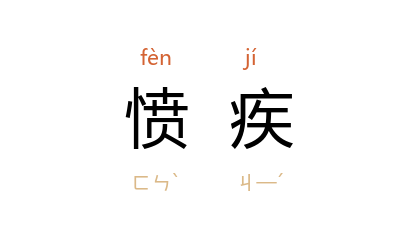 引《后汉书·党锢传序》:“膺 愈怀愤疾,竟案杀之。”《新五代史·伶官传序》:“是时,诸伶人出入宫掖,侮弄縉绅,羣臣愤嫉,莫敢出气。”章炳麟 《五无论》:“夫窃钩者诛,窃国者为诸侯,此 庄生 所为愤嫉。”