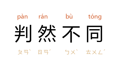⒈ 判:显然的区别。区分的清清楚楚,完全不一样。